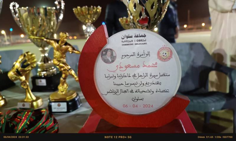 اختتم أمس السبت 6 ابريل 2024 الدوري الرمضاني المنظم من طرف جمعية اتحاد سلوان لكرة القدم ،وبتنسيق مع جماعة سلوان دوري المرحومين محمد المسعودي الملقب بأمانسيو وعبد الله مالك دوري الاطفال في نسخته الأولى