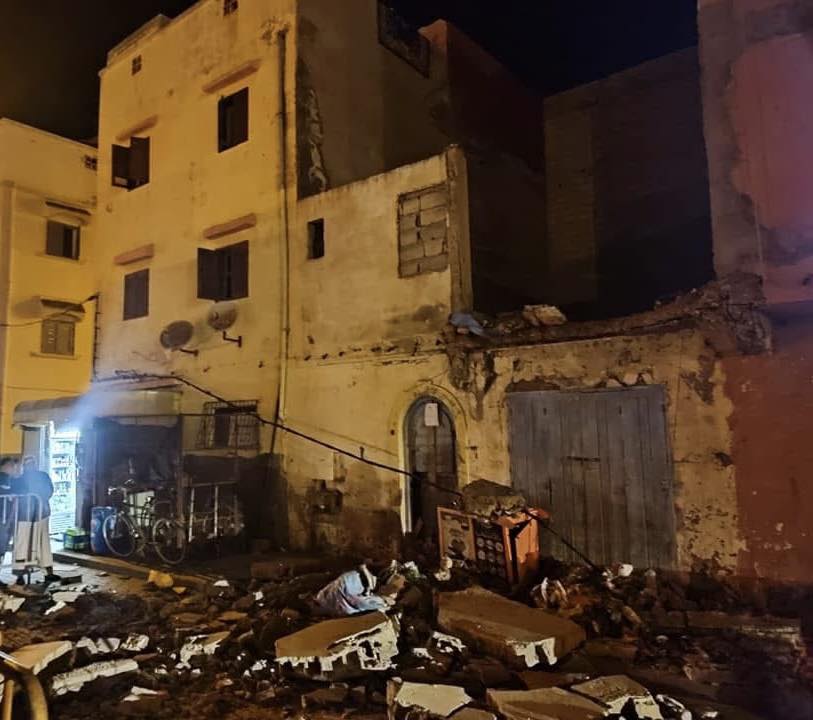 اهتز حي السقالة العتيق بمدينة الصويرة، قبل قليل من مساء اليوم الجمعة، على وقع انهيار جزء من واجهة أحد المنازل التقليدية الواقعة بالقرب من المسجد.