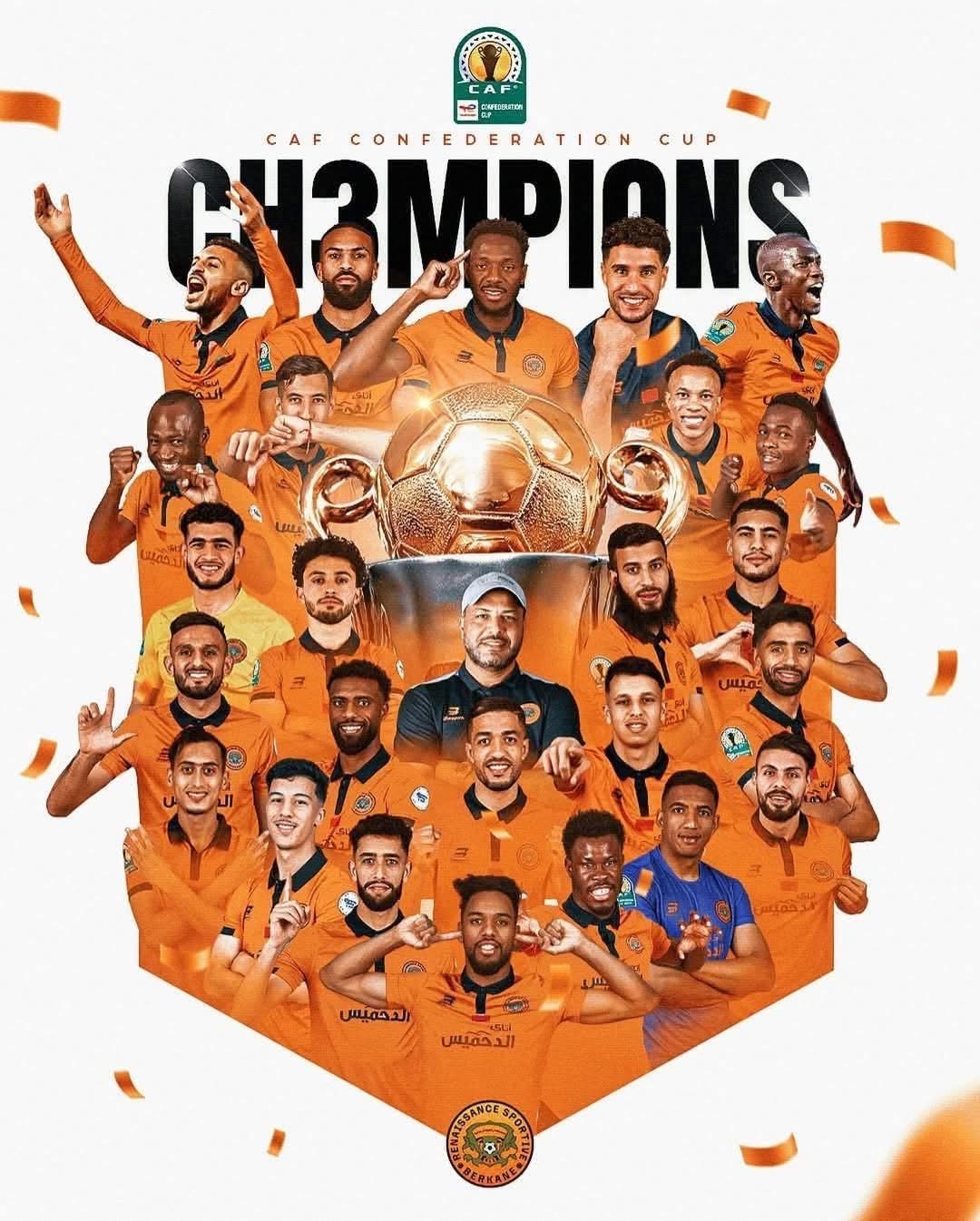 تُوّج فريق نهضة بركان بطلاً لكأس الكونفدرالية الإفريقية لكرة القدم، بعد فوزه المستحق في المباراة النهائية التي جرت مساء اليوم، في مواجهة قوية أمام فريق سيمبا التنزاني
